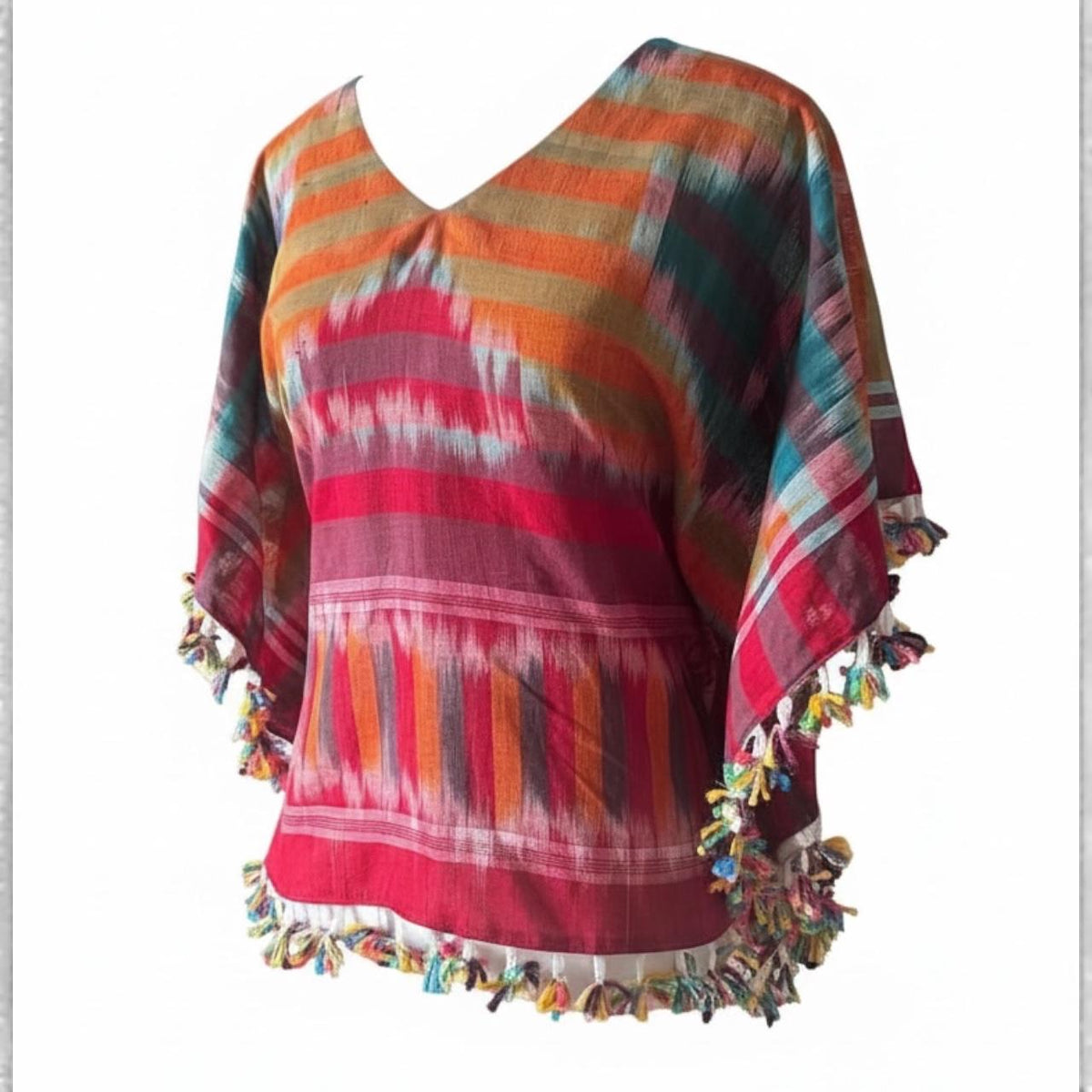 Embrace effortless elegance with our Kotki Gamcha Kaftan top, crafted from traditional handwoven fabric indigenous to West Bengal and Bangladesh. Designed for a relaxed, easy-going vibe, this top features Japanese kimono-style sleeves that add a touch of sophistication and comfort.